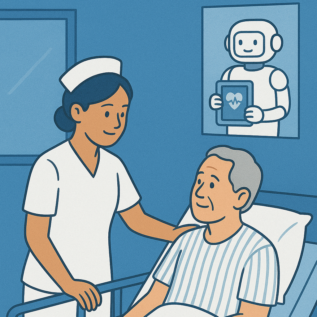 在台灣,有位病人走進醫院大廳掛號時,會不禁納悶為何會有大排長龍的人潮,那是2018年抱著病軀排隊掛號的小李同學,等待診間叫號看診前不乏還有許多流程,例如:填寫基本資料、量身高、體重、血壓及脈搏 ; 2025年的今天,大家開始熟悉用網路預約掛號、診間插健保卡報到,甚至量身高、體重、血壓及脈搏的儀器,插卡連線就可以連結基本資料進行紀錄,但人工智慧紅紅火火發展多年,這就是醫院人工智慧應用的全部了嗎?